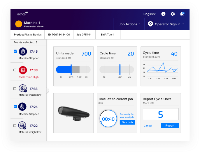 Matics enables you to collect and analyze data in real time so you can obtain immediate and actionable insights during your shift — and not post mortem. With all that information stored in the cloud, you can maintain transparency and communicate effortlessly with your stakeholders.